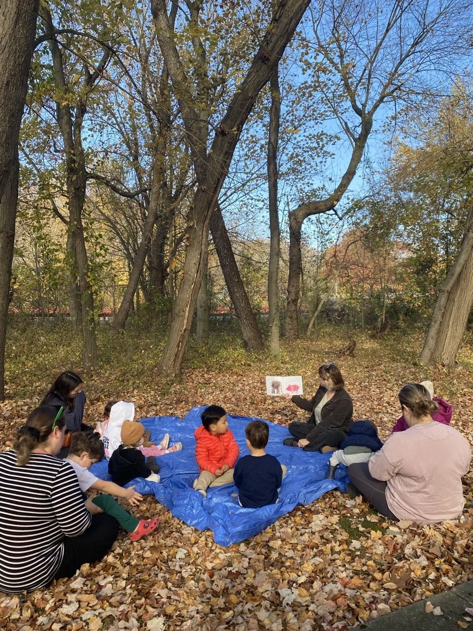 Our Wondertree & Me classes are designed to invite both children and their caregivers to engage in open-ended play prompts that develop creativity, empathy, and encourage joyful play. Each class is one hour long and includes songs and guided play prompts that follow a theme throughout the season. Classes are held outdoors in local greenspaces and are held in all weather, with the exception of dangerous weather.
